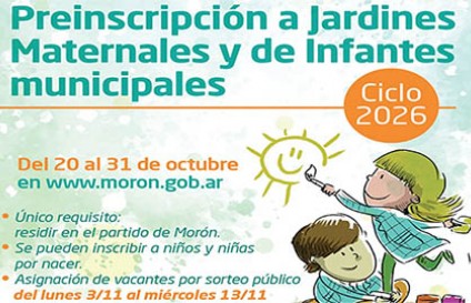 El Municipio de Morón anunció la apertura de la preinscripción para el ciclo lectivo 2026 en sus jardines maternales y de infantes. Desde el 20 hasta el 31 de octubre, las familias interesadas podrán completar el formulario online a través del sitio web oficial del Municipio.